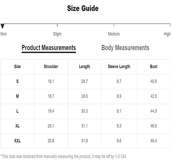 Bust Size: (Small) 40.9 inch,(Medium) 42.5 inch, (Large) 44.5 inch, (X-Large) 46.5 inch, (XX-Large) 48.4 inch.