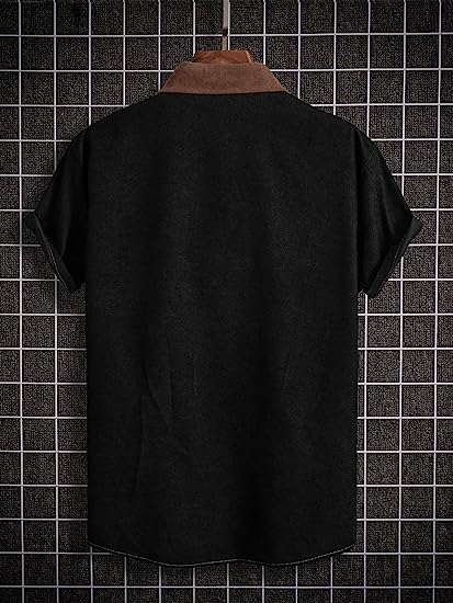 Men's Casual Button Up Shirt Pocket Short Sleeve Colorblock Collar Blouse Tops