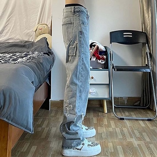 Men's Jeans Crossbody Patch Jeans Men's Loose Jeans Distressed Men's Jeans